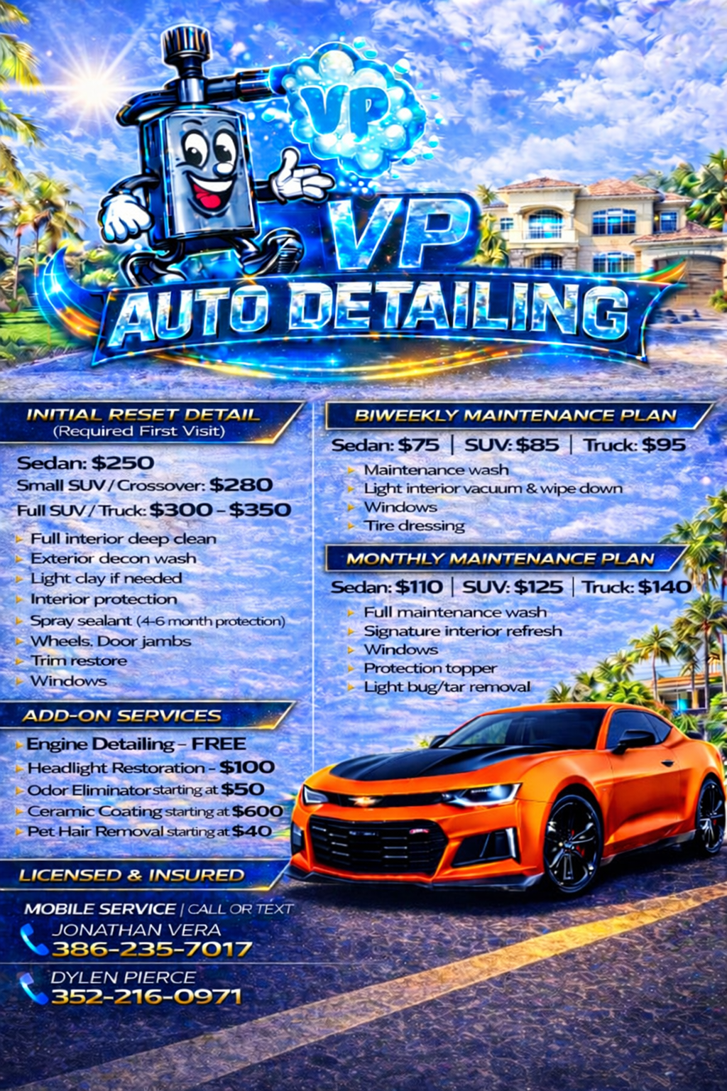 We come to you! Premium Mobile Detailing Services. Licensed & Insured.